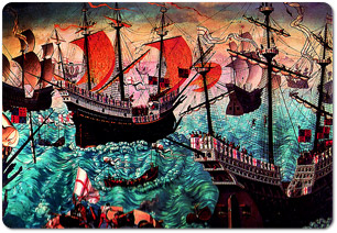 新大陸におけるシェリーの販売は海賊行為によって停滞させられました。船隊の積荷は掠奪され、ロンドンで売られました。最も大量にワインを掠奪したのは、フランシス・ドレイク卿の船隊にいたマーティン・フロビッシャー卿で、1587年にカディスを襲い、ヘレスを荒らし、ワインを3000樽奪っていきました。この掠奪品がロンドンに着くと、イギリスの宮廷ではシェリーが流行になりました。当時シェリーが流行したことに触発され、ウィリアム・シェークスピアはリチャード三世、ヘンリー六世、十二夜、ウィンザーの陽気な女房たち、ヘンリー四世など多くの作品でしばしば言及しています。