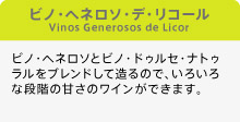 オロロソをベースにして造られるため、濃いマホガニー色のビノ・ヘネロソ・デ・リコール。木樽やレーズンを思わせる深みのある香り。ビロードのような口当たりで、甘くフルボディ。